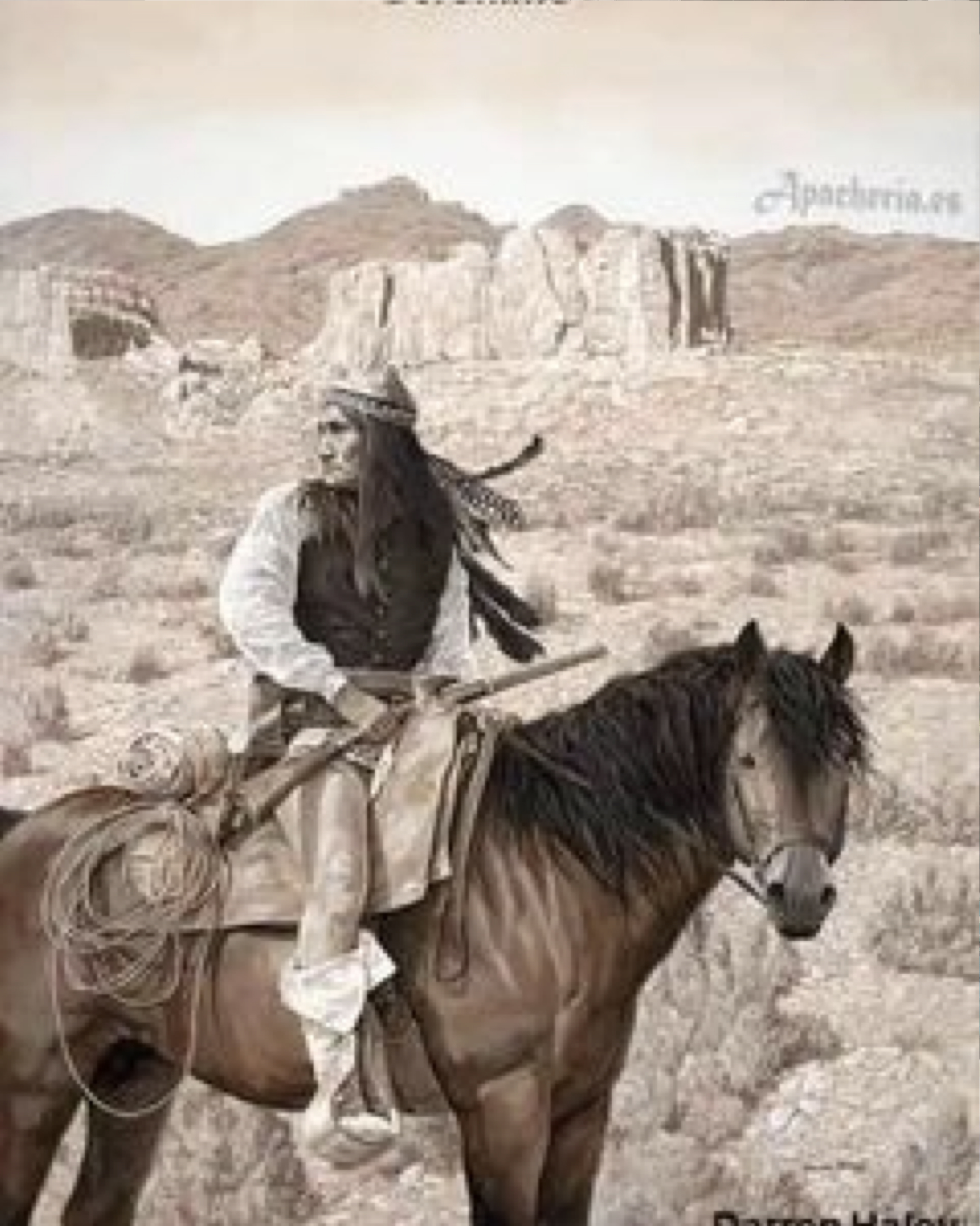 Gerónimo fué jefe máximo de los apaches de Norteamérica. Nacido el 16 de Junio de 1829 y fallecido el 17 de Febrero de 1909. Destacó como líder guerrero en los enfrentamientos de estos con las autoridades de Estados Unidos y México. Cultura Popular: En películas y series de televisión los personajes que se avientan en caída libre suelen gritar su nombre como forma de adquirir valentía. La costumbre ha terminado trascendiendo en lenguaje coloquial y para cualquier situación físicamente arriesgada... (más de este artículo en Wikipedia). |